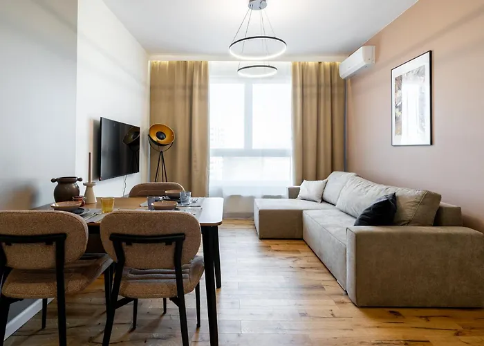 Disfruta de tus vacaciones en Katowice en el Korfantego Premium 44A Apartment By Bookinghost Katowice. Ideal para quienes buscan una experiencia auténtica, está situado a 25 minutos a pie de la Universidad de Silesia y a una distancia de 2 km del Planetario Silesiano. El apartamento de 42 m² cuenta con Wi-Fi y un aparcamiento privado gratuito para los que viajan en coche.